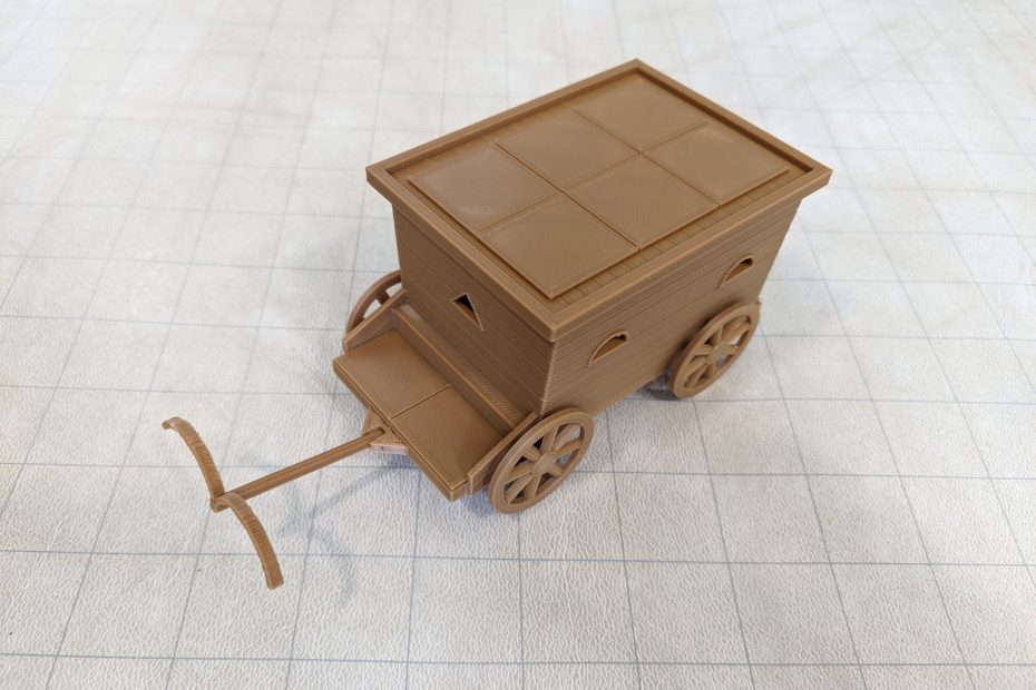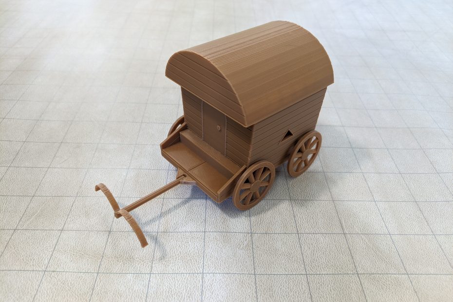 Covered WagonCovered wagon with built-in map grid. Print top with supports. Print and adhere 4 wheels.